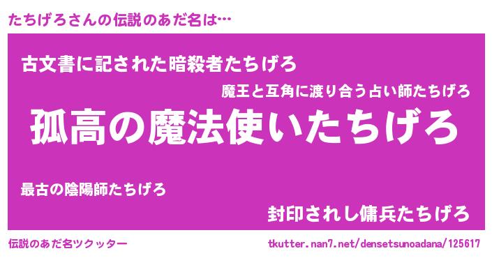 | 胡散臭い通販商品みたいなあだ名 | 『信頼と実績のサプリメント…その名も「たちげろ」』 |