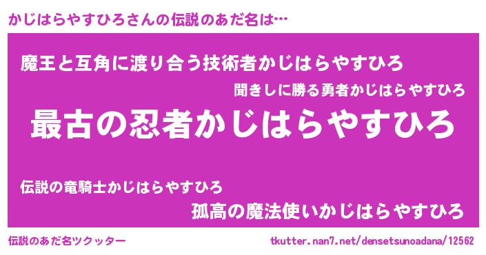 | 男性向けラノベタイトル風あだ名 | 『転生したらかじはらやすひろだった件』 |