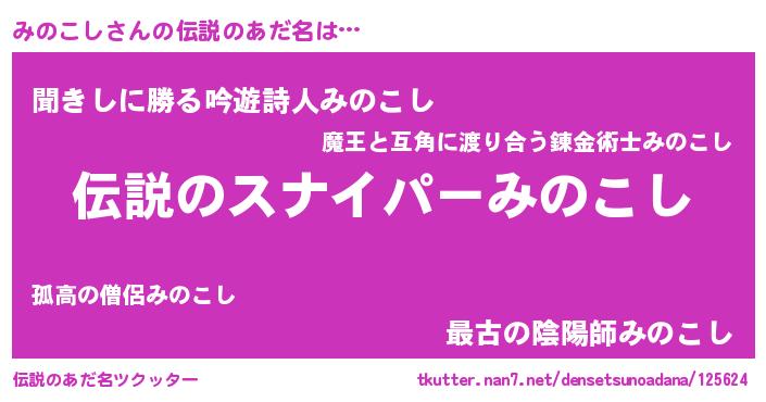 | 男性向けラノベタイトル風あだ名 | 『ミノコシスレイヤー』『みのこしの憂鬱』 |