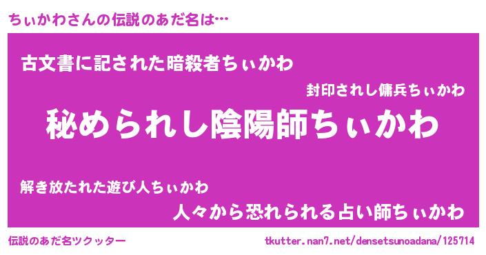 | 意味不明あだ名 | 『ちぃかわフォーエバー』 |