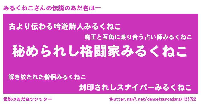 | ヒーロー風カッコイイあだ名 | 『ウルトラみるくねこマン』 |