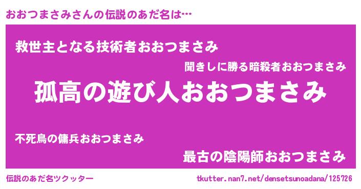 | 男性向けラノベタイトル風あだ名 | 『ダンジョンにおおつまさみを求めるのは間違っているだろうか』 |