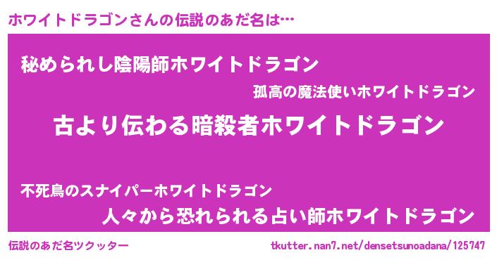 | 女子向けラノベタイトル風あだ名 | 『乙女ゲームの破滅フラグしかない悪役ホワイトドラゴンに転生してしまった…』 |