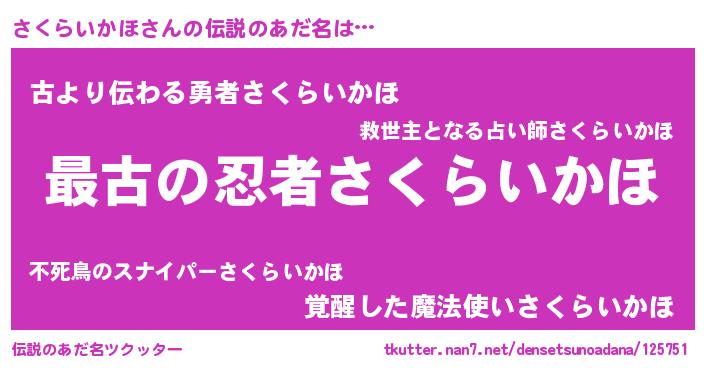 | 意味不明あだ名 | 『自称さくらいかほ』 |