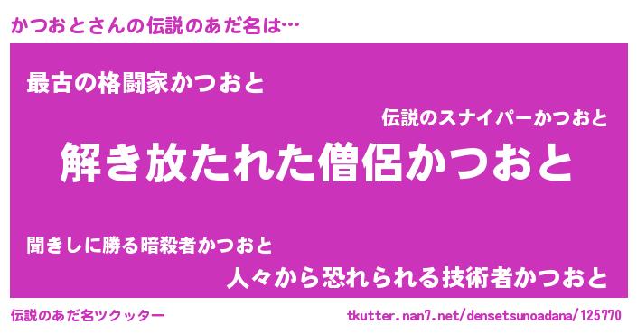 | ヒーロー風カッコイイあだ名 | 『魔戒騎士カツ』『ウルトラかつおとマン』 |