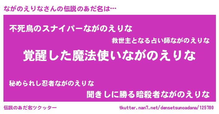 | 男性向けラノベタイトル風あだ名 | 『ながのえりなに滅ぼされるだけの簡単なお仕事です』 |