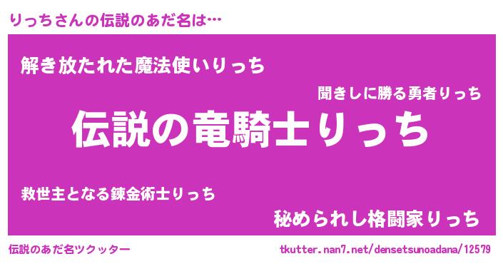 | 胡散臭い通販商品みたいなあだ名 | 『必ず成功するブレスレット…その名も「りっち」』 |