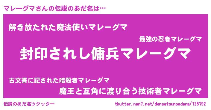 | 男性向けラノベタイトル風あだ名 | 『マレーグマアートオンライン』 |