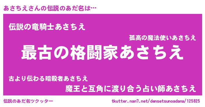 | ファンタジー風あだ名 | 『エターナルアサチエー』『ゼアサトゥ』 |
