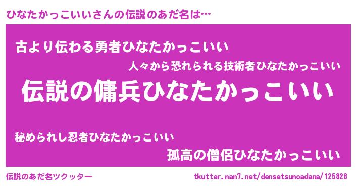 | ヒーロー風カッコイイあだ名 | 『超時空戦士ヒナタカッコイイ』 |