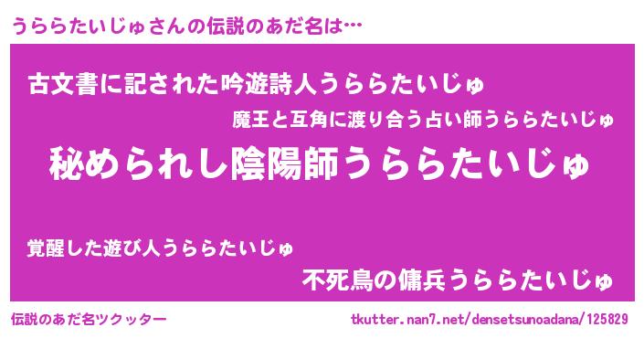 | ファンタジー風あだ名 | 『エターナルウララタイジュー』 |