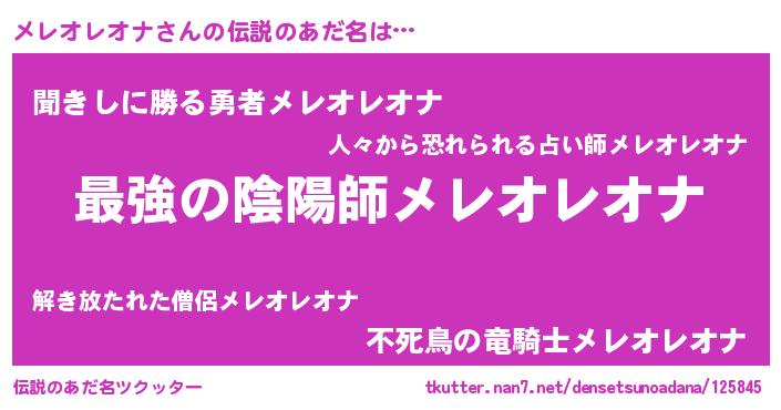 | ヒーロー風カッコイイあだ名 | 『ウルトラメレオレオナマン』 |