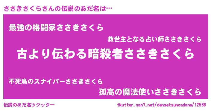 | 意味不明あだ名 | 『永久保存ささきさくら』 |