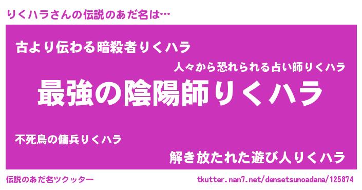 | 胡散臭い通販商品みたいなあだ名 | 『あなたにだけ特別に提供する世界で10本だけ現存している希少なブランデー…その名も「りくハラ」』 |