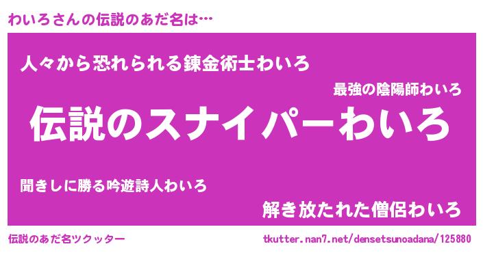 | ヒーロー風カッコイイあだ名 | 『ウルトラ戦士ワイロ』『スーパーワイロ』 |