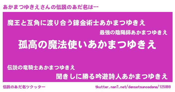 | 意味不明あだ名 | 『とにかく怪しいあかまつゆきえ』 |