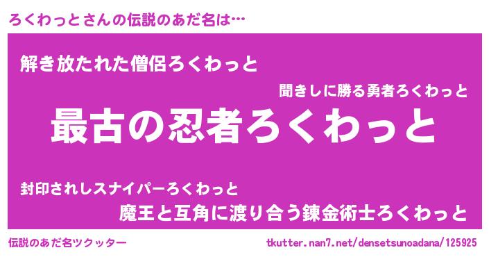 | ヒーロー風カッコイイあだ名 | 『仮面ロクダー』『幻影騎士ロク』 |