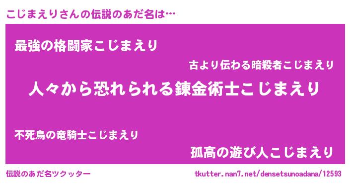 | ヒーロー風カッコイイあだ名 | 『正義の使者こじまえり』『暗黒騎士コジ』 |