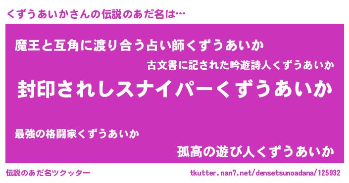 | ヒーロー風カッコイイあだ名 | 『スーパークズウアイカ』『仮面クズダー』 |