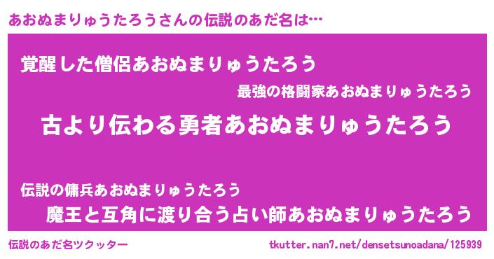 | ヘコむあだ名 | 『あおぬまりゅうたろう(震え声)』 |
