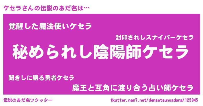 | ヒーロー風カッコイイあだ名 | 『超時空戦士ケセラ』『幻影騎士ケセ』 |