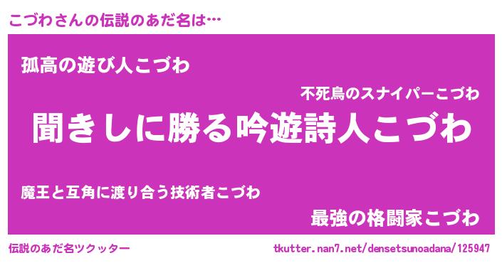 | ヒーロー風カッコイイあだ名 | 『ネオコヅワ』『幻影騎士コヅ』 |