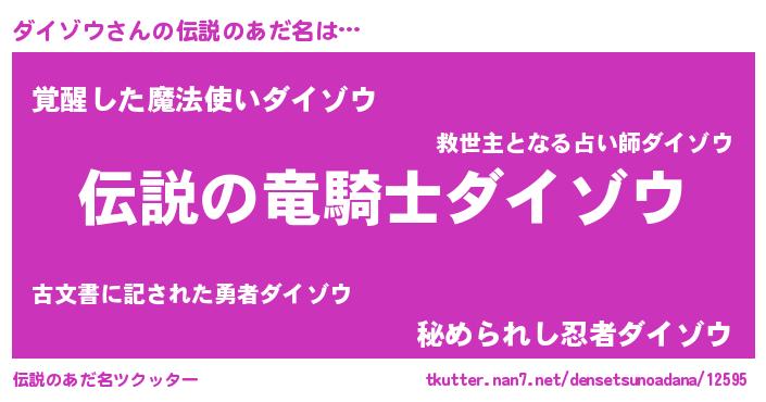 ヒーロー風カッコイイあだ名 | 『スーパーダイゾウ』『炎刃騎士ダイ』 |