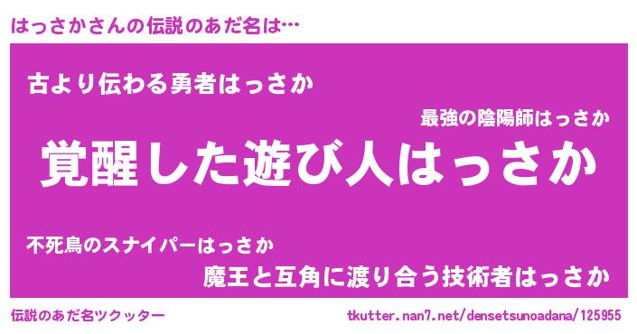 | ヒーロー風カッコイイあだ名 | 『幻影騎士ハッ』『ネオハッサカ』 |