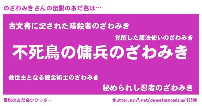 | 胡散臭い通販商品みたいなあだ名 | 『モテモテ間違いなし水晶球…その名も「のざわみき」』 |