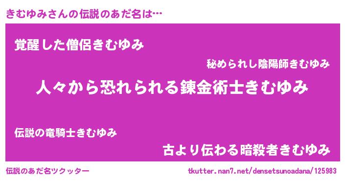 | ヒーロー風カッコイイあだ名 | 『友情の使者きむゆみ』『仮面キムダー』 |