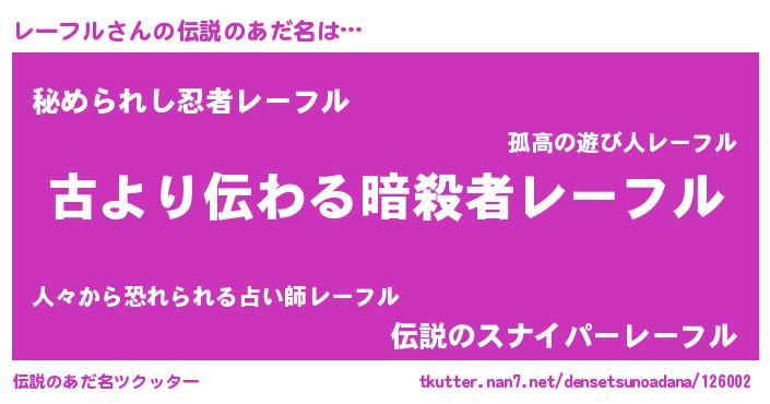 | 意味不明あだ名 | 『永久保存レーフル』『自称レーフル』 |