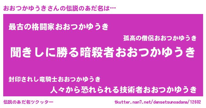 | 意味不明あだ名 | 『自称おおつかゆうき』 |