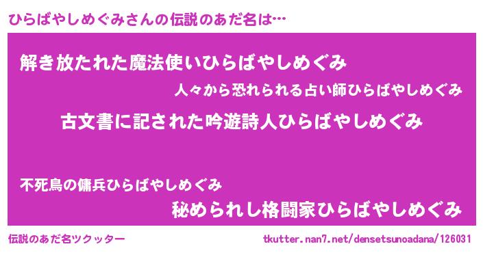 | 意味不明あだ名 | 『永久保存ひらばやしめぐみ』 |