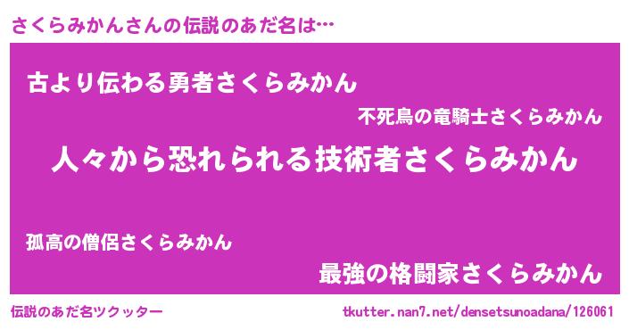 | 胡散臭い通販商品みたいなあだ名 | 『100人中100人が認めたマグネット磁石…その名も「さくらみかん」』 |