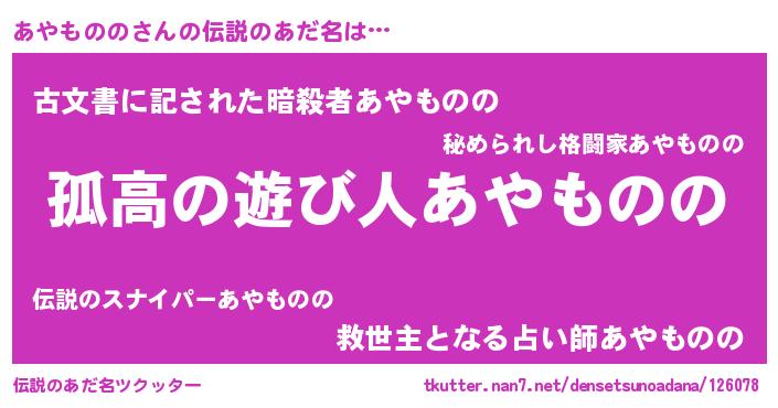 | 意味不明あだ名 | 『とにかく怪しいあやものの』 |