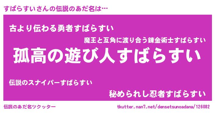 | 女子向けラノベタイトル風あだ名 | 『すばらすいは平凡を望む』 |