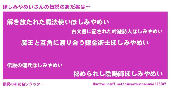 | ヒーロー風カッコイイあだ名 | 『愛の使者ほしみやめい』『魔戒騎士ホシ』 |