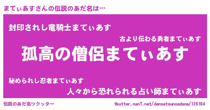 | 意味不明あだ名 | 『とにかく怪しいまてぃあす』 |
