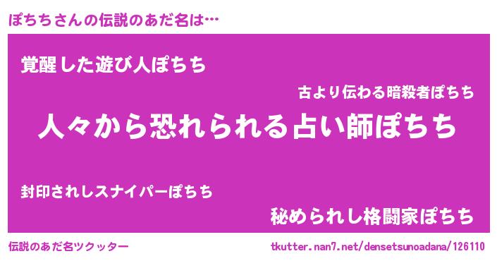 | ヒーロー風カッコイイあだ名 | 『友情の使者ぽちち』『炎刃騎士ポチ』 |