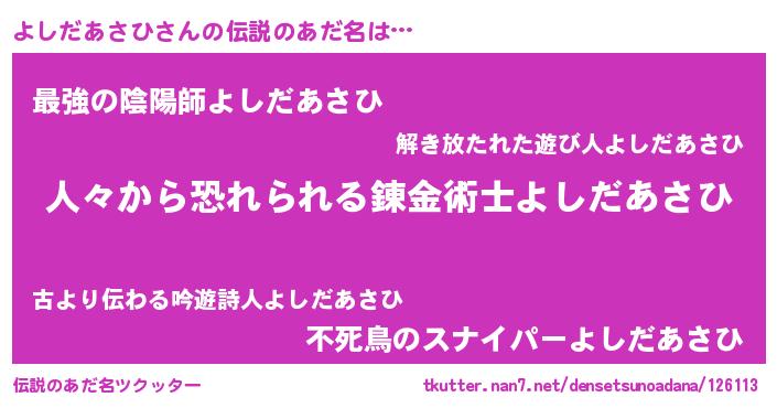 | ヒーロー風カッコイイあだ名 | 『友情の使者よしだあさひ』 |