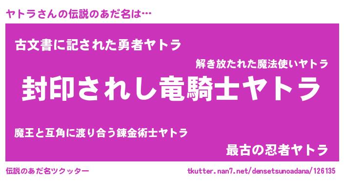 | ヒーロー風カッコイイあだ名 | 『スーパーヤトラ』『仮面ヤトダー』 |