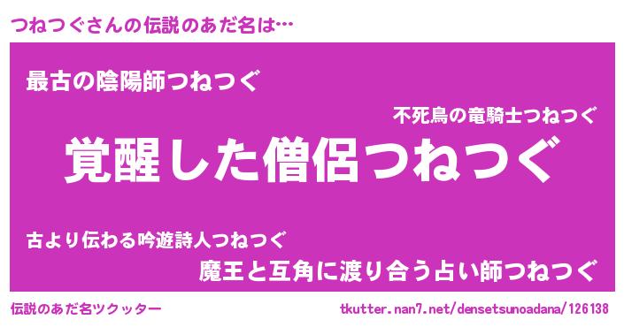 | ヒーロー風カッコイイあだ名 | 『仮面ツネダー』『炎刃騎士ツネ』 |
