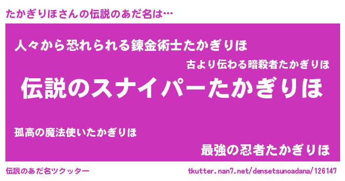 | 胡散臭い通販商品みたいなあだ名 | 『必ず成功する霊験あらたかなお札…その名も「たかぎりほ」』 |