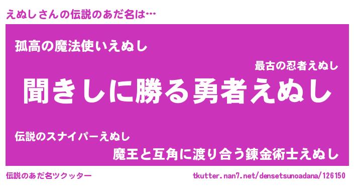 | 意味不明あだ名 | 『永久保存えぬし』『えぬしフォーエバー』 |