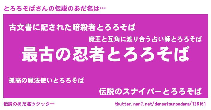 | ヒーロー風カッコイイあだ名 | 『仮面トロダー』『ネオトロロソバ』 |