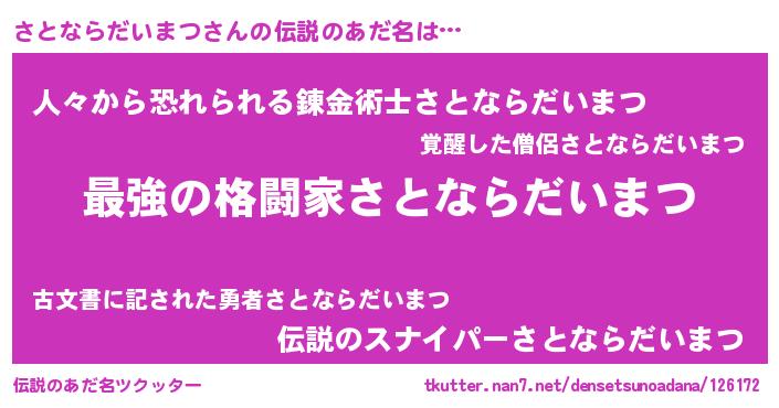 | 意味不明あだ名 | 『さとならだいまつフォーエバー』 |