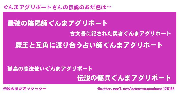 | 女子向けラノベタイトル風あだ名 | 『ぐんまアグリポート恋絵巻』 |