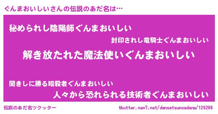 | 男性向けラノベタイトル風あだ名 | 『冴えないぐんまおいしいの育てかた』 |