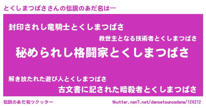 とくしまつばささんの伝説のあだ名をツクッター!