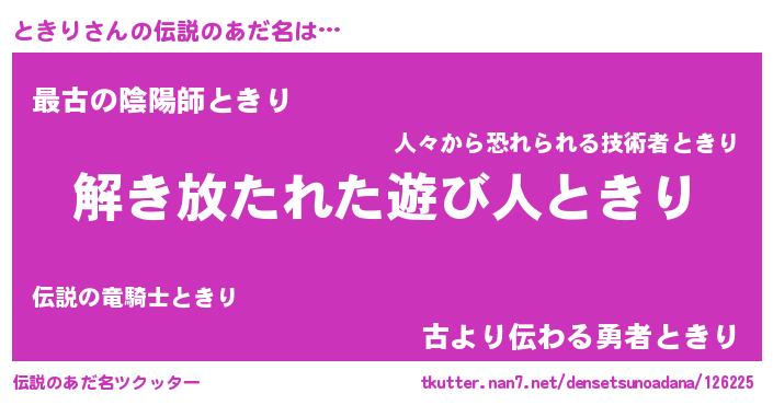 | 意味不明あだ名 | 『とにかく怪しいときり』『自称ときり』 |